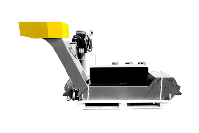 Transporter z łańcuchem i zgarniaczami oraz bębnem filtrującym. Przeznaczony głównie do aluminium i stali.