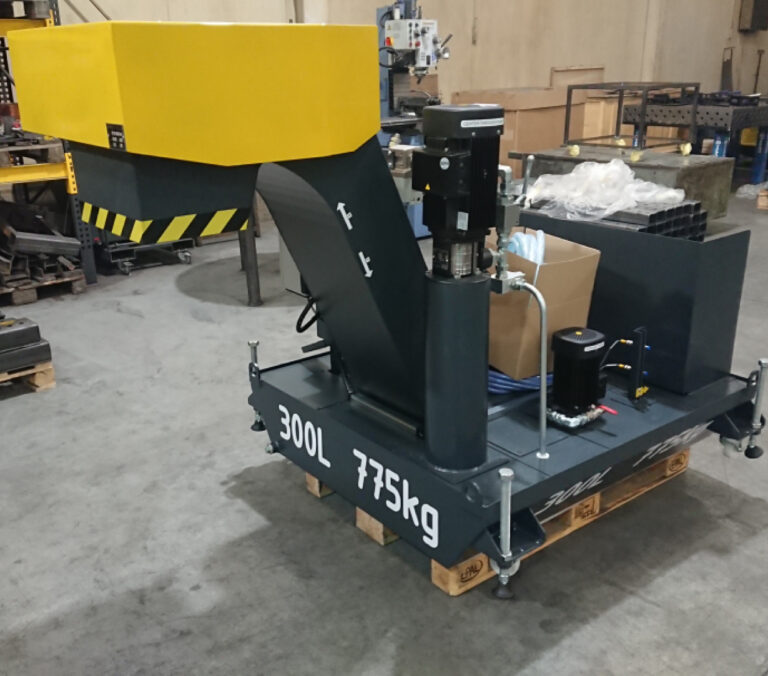 Kontener przystosowany do pracy między innymi przy obrabiarkach, jak również wolnostojący na odpady typu: złom, wióra, itp.