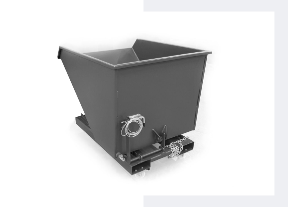 Kontener przystosowany do pracy między innymi przy obrabiarkach, jak również wolnostojący na odpady typu: złom, wióra, itp.